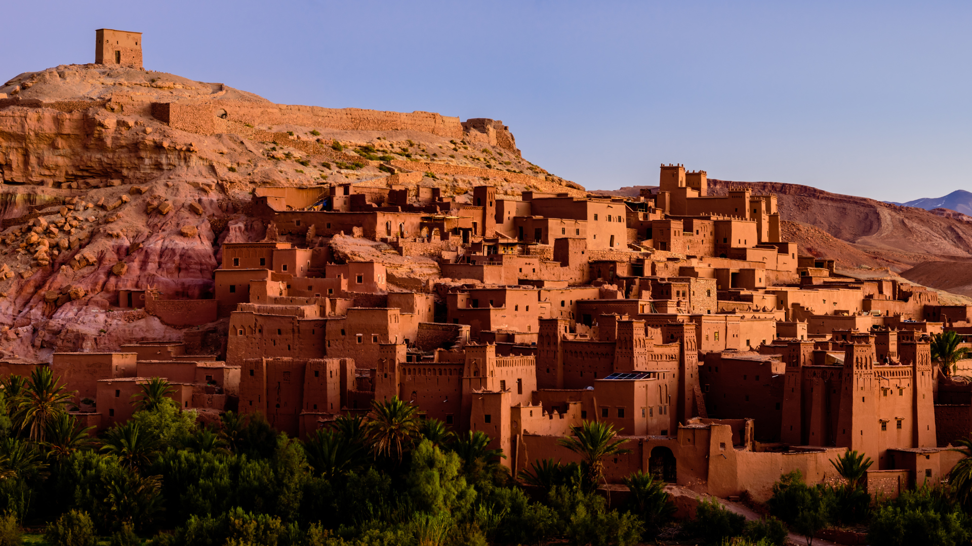 Wake early to witness the sunrise cast a soft glow over the desert landscape. After the trek back to the village by camel or 4×4, you can enjoy a refreshing shower and breakfast at the hotel. Today’s route takes us on a different path back towards Ouarzazate. We’ll stop at the bustling traditional market in Rissani, a true taste of local life. Our journey then winds through the stunning Draa Valley, home to one of Morocco’s longest and most lush palm groves. We’ll make several scenic stops, allowing you to absorb the beauty and capture the perfect photograph. We arrive in Ouarzazate, the “Hollywood of Africa,” in the evening, where you’ll settle into a beautiful Riad or hotel for the night.